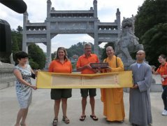 外国友人在福建省莆田南少林寺观禅武品佛斋