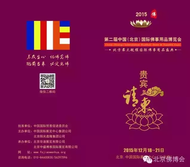 每一位参与者,无论您是哪种方式,参展、参观、或只是有缘看了这篇文章,我们都真诚的邀请您参与进来,共同聆听、欣赏、品鉴、感悟佛教文化的巨大魅力,让展会不仅仅是单纯的展览,更是立足首都北京传承和发扬中华传统文化的重要平台,诸恶莫作岁岁平安,众善奉行年年如意。2015年12月18日至21日北京佛博会期待与您结善缘。