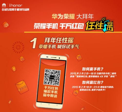 荣耀任性摇红包此举,其实也凸显了荣耀在互联网营销的能力建设。2014年荣耀异军突起,正是得益于荣耀穿互联网的鞋,走出自己的路。而荣耀的成果也相当可喜,半年成功进入57个全球市场。2014年增长近30倍,2全球销量超2000万台。作为全球化的荣耀,在2015年或将更加任性崛起,当然,这也是我们所期待的。