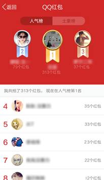 在排行榜中,有“人气榜”和“土豪榜”,分别代表抢红包和发红包的排名,在发红包的页面下端都有“红包排行榜”。别怪我没提醒你,是时候去抱人气榜、土豪榜中好友的大腿,然后默默的问他要红包就好了!
